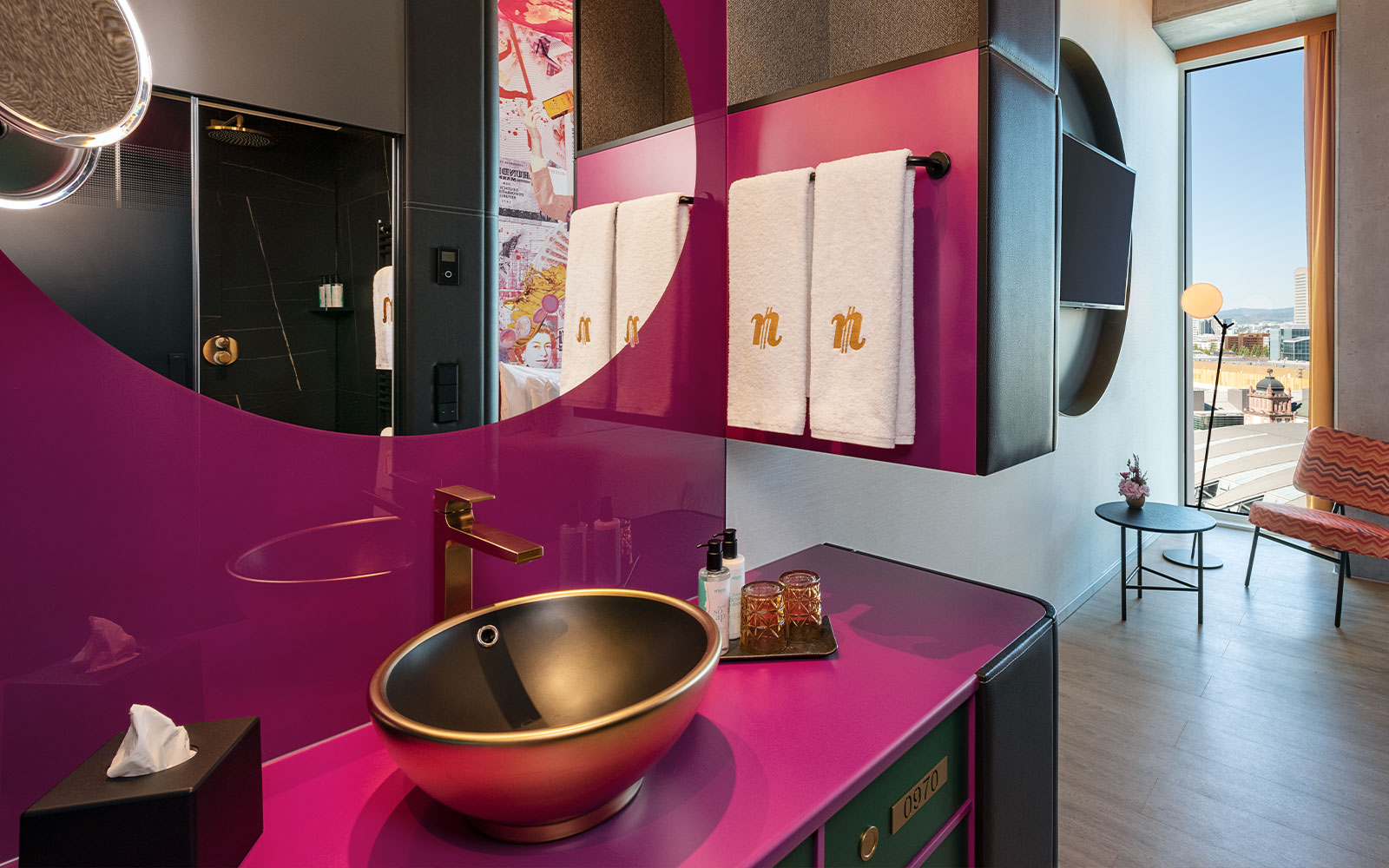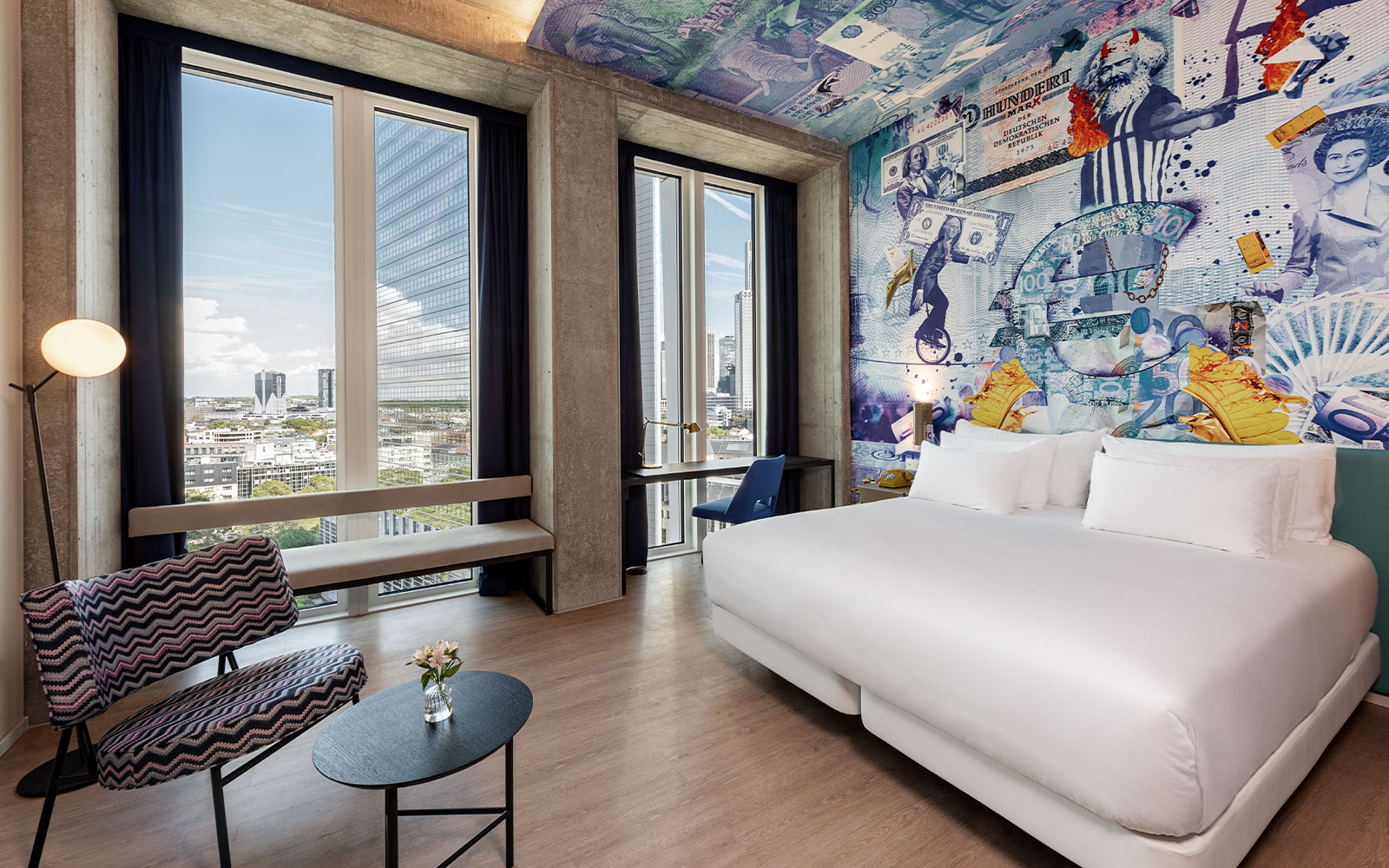 Wir freuen uns sehr, Ihnen für das Hochschullehrerkonvent 2026 ein Zimmerkontingent im „Hotel nhow Frankfurt“ anbieten zu können. Das Hotel befindet sich in einem beeindruckenden Wolkenkratzer unweit des Hauptbahnhofes. Von der NFT SKYBAR hat man einen Panoramablick über ganz Frankfurt. Jedes der 350 Hotelzimmer besticht durch sein individuelles Design. Aber auch als Konferenzort ist das nhow Frankfurt bestens geeignet – wovon wir uns im Januar persönlich überzeugen können.